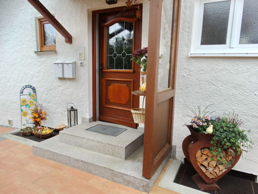 In unseren beiden gemütlichen Nichtraucher-Ferienwohnungen im Erd- bzw. Obergeschoss mit Terrasse und Balkon in sonniger Südlage werden Sie sich wohlfühlen, schon am Morgen durch unseren Brötchenservice! Selbstverständlich sind die Betten bei Ihrer Anreise schon überzogen, Handtücher liegen bereit. Außerdem stehen Ihnen kostenloses WLAN, eine Einstellmöglichkeit für Ihre Fahrräder, Skier, Schlitten usw., eine kostenlose E-Bike-Ladestation und Parkplätze direkt am Haus zur Verfügung.